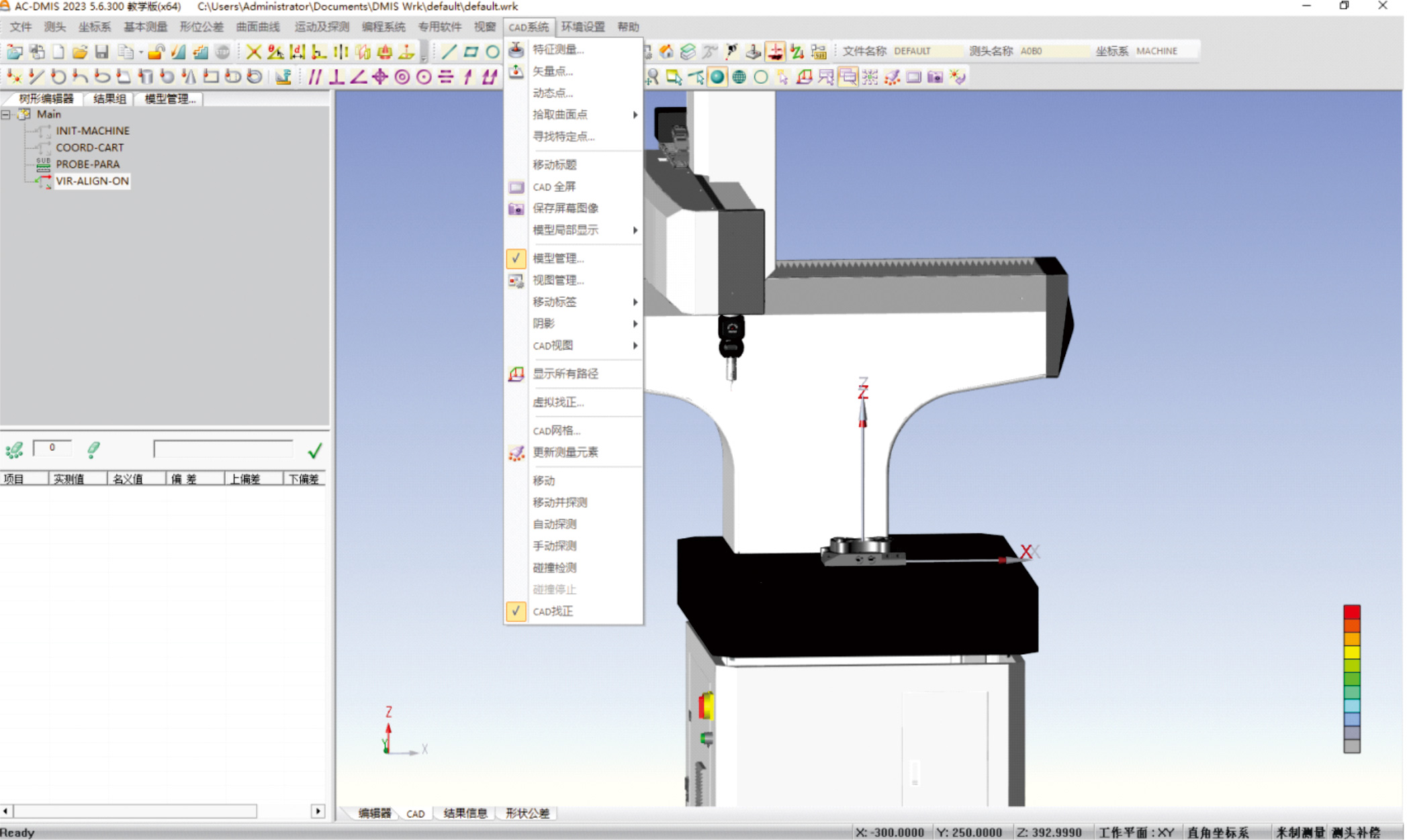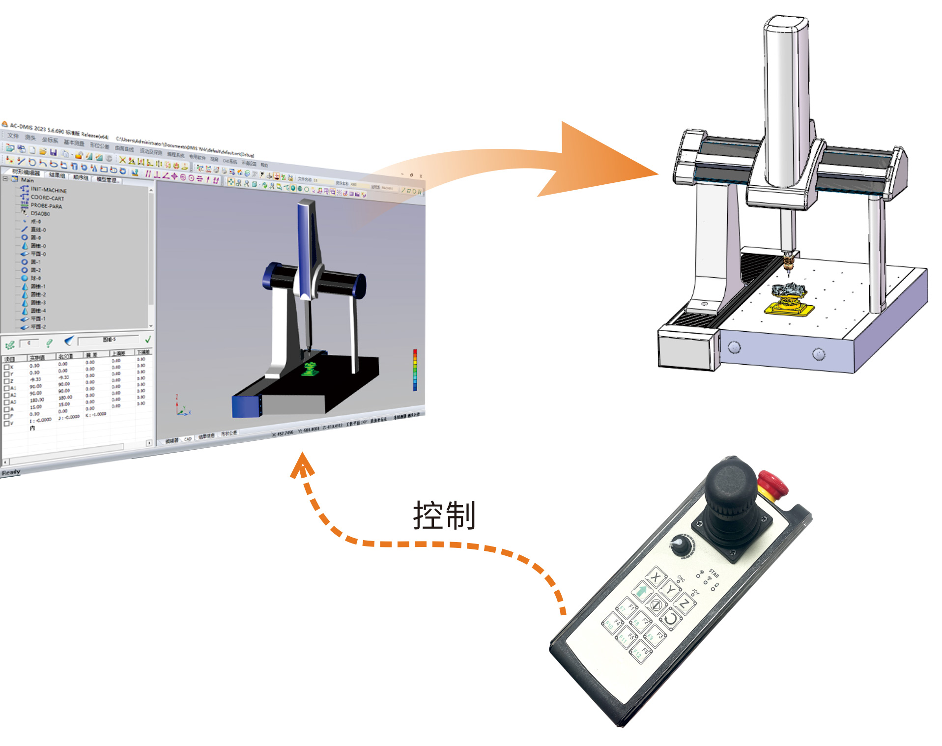随着工业测量及质量控制领域的快速发展,虚拟仿真实训越来越受到职业教育行业的重视,同时也可作为企业培训新员工的实训平台。爱德华全息仿真教学系统由AC-DMIS/NET·DMIS脱机软件及测量机真实手操器组成,可通过手操器在3D模型上采点,具有实时的碰撞检测功能。用户可以通过操作虚拟仿真软件完成测量、评定、报告输出等所有在真实场景中的三坐标操作工作。