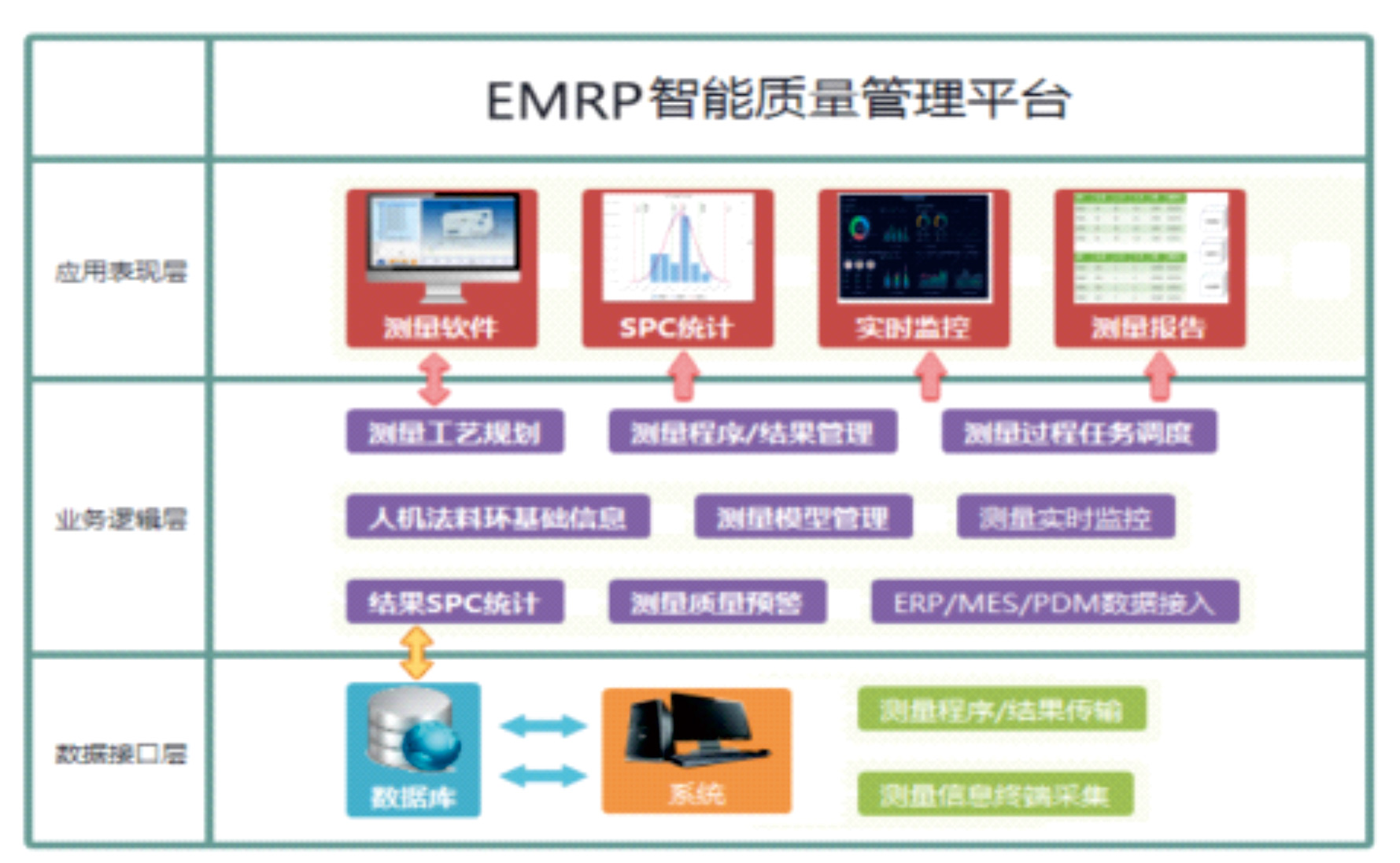 EMRP智能质量管理平台将质量管理过程中人、机、法、料、环等多种资源整合,实现产品质量管理业务的数字化和网络化,为企业的产品设计人员、制造人员、检验人员共同搭建的一个系统,满足企业对产品设计、产品制造、产品检验、产品实验、产品追溯等一系列操作提供质量数据支撑。