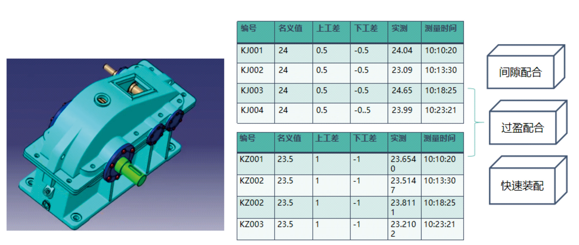 根据数据库中的零部件的检测数据,通过算法定义,自动排列出装配的最优解;提供了装配效率,防止了零件尺寸都合格却无法装配 的问题,杜绝了人工出错;算法可根据客户需求持续更新迭代。
